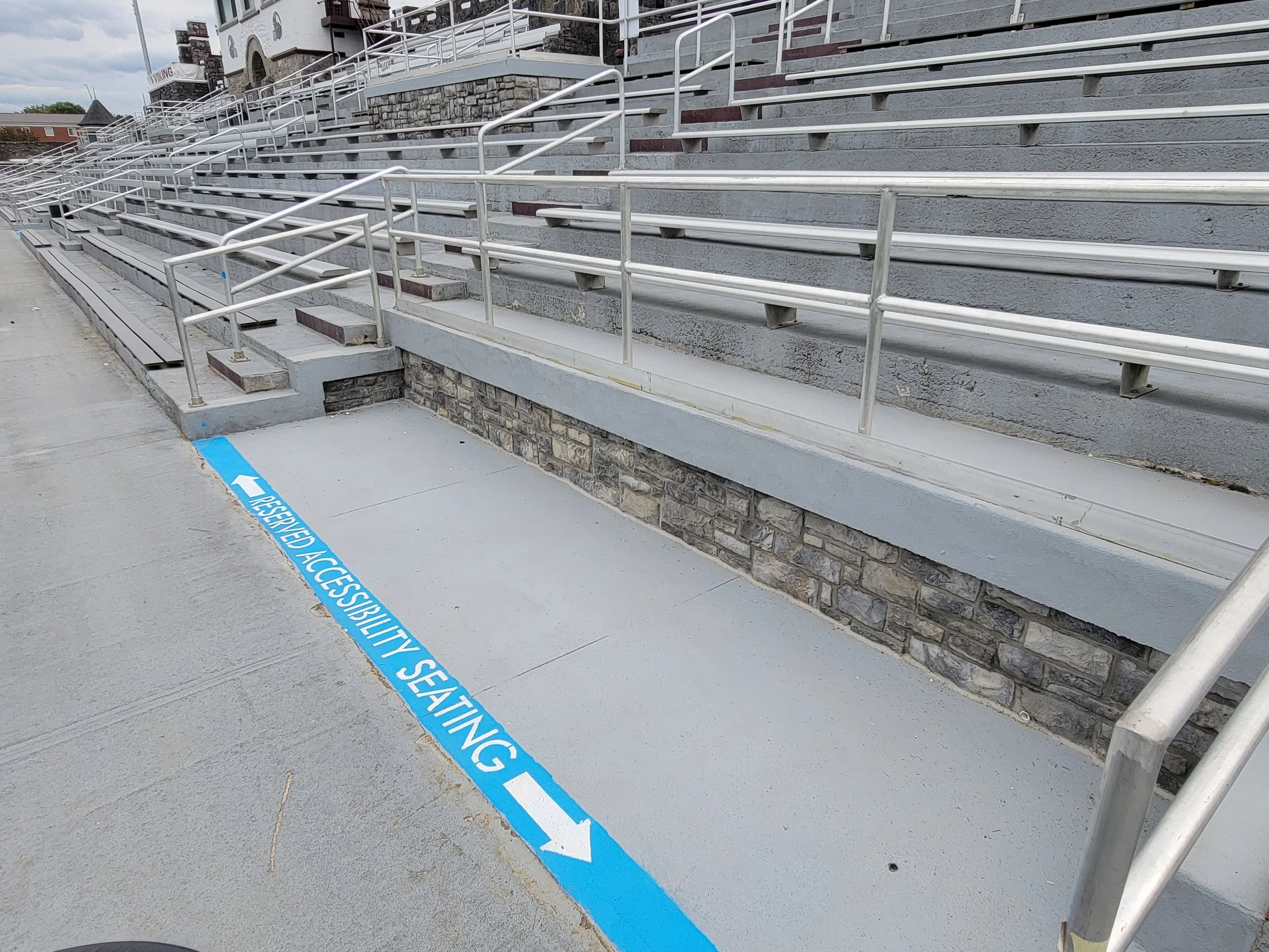 Accessible ramps on both sides of castle from ground level to lower level of stadium.
